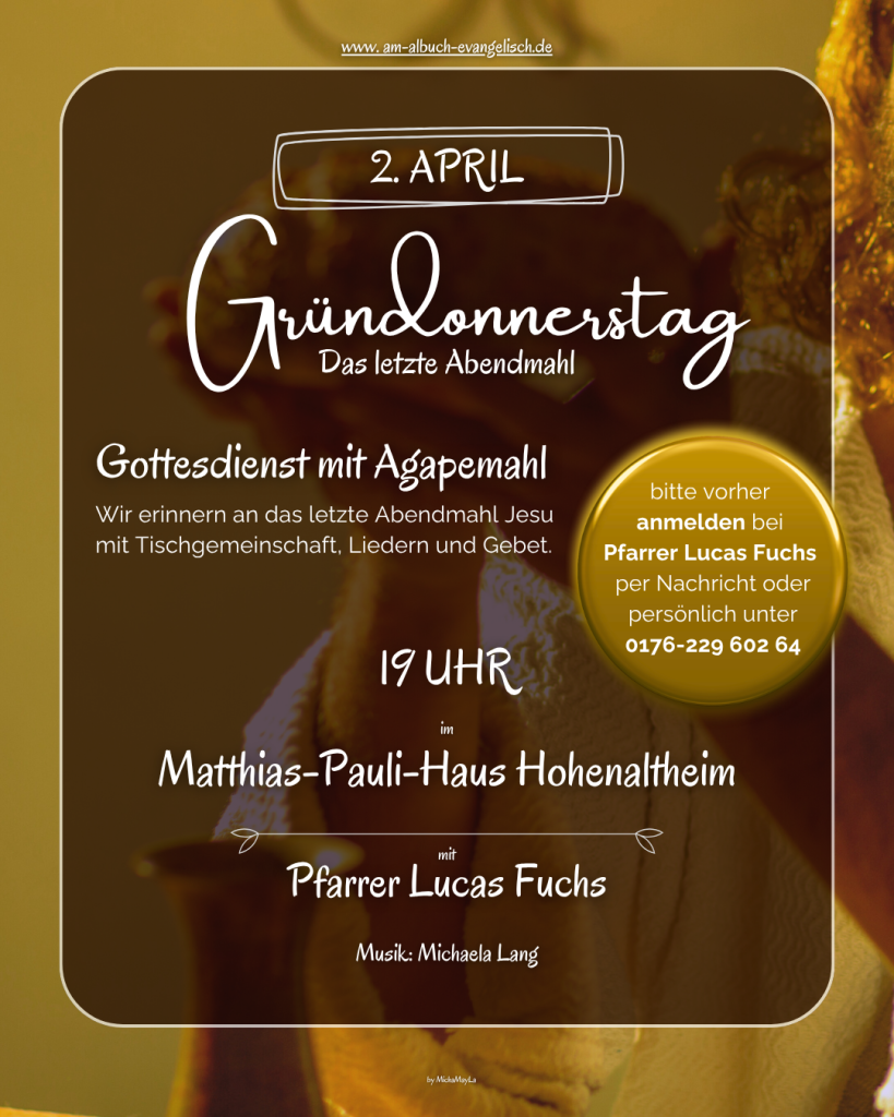 16:30 Uhr Osterandacht mit Abendmahl in Christgarten